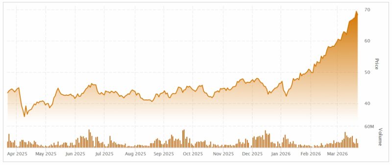Canadian Natural Resources stock (TSX:CNQ) opened trading at C$68.66 and has risen more than 55 per cent since this time last year.