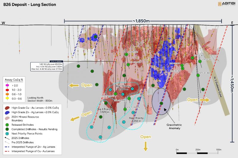 According to Abitibi, the intercept represents one of the most robust results to date from the western plunge of the B26 system and validates the zone’s high-grade growth potential.