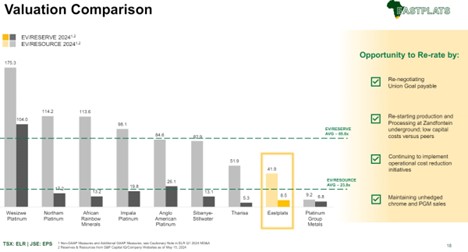 As a relatively new PGM miner, Eastplats brings a fresh perspective to its operations. Their flexibility enables the company to implement operational efficiencies that drive production and margins. Unlike many of its peers, Eastplats’ smaller size allows for more agile capital deployment and operational adjustments. The restart of the Crocodile River Mine, for instance, required a modest capital expenditure of approximately C$13 million to achieve the targeted 40,000 tons per month production profile by the end of 2024.