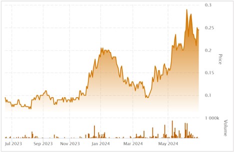 (Eastern Platinum Ltd. stock chart – June 2023 to June 2024.)