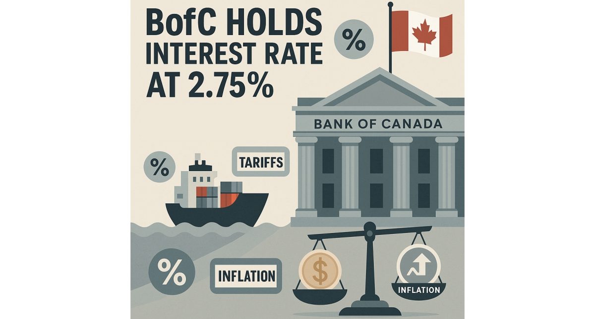 The bank of Canada announced on Wednesday that it will maintain its target for the overnight rate at 2.75 per cent, with the bank rate at 3 per cent and the deposit rate at 2.70 per cent, citing persistent economic uncertainty and mixed signals from inflation and trade dynamics.