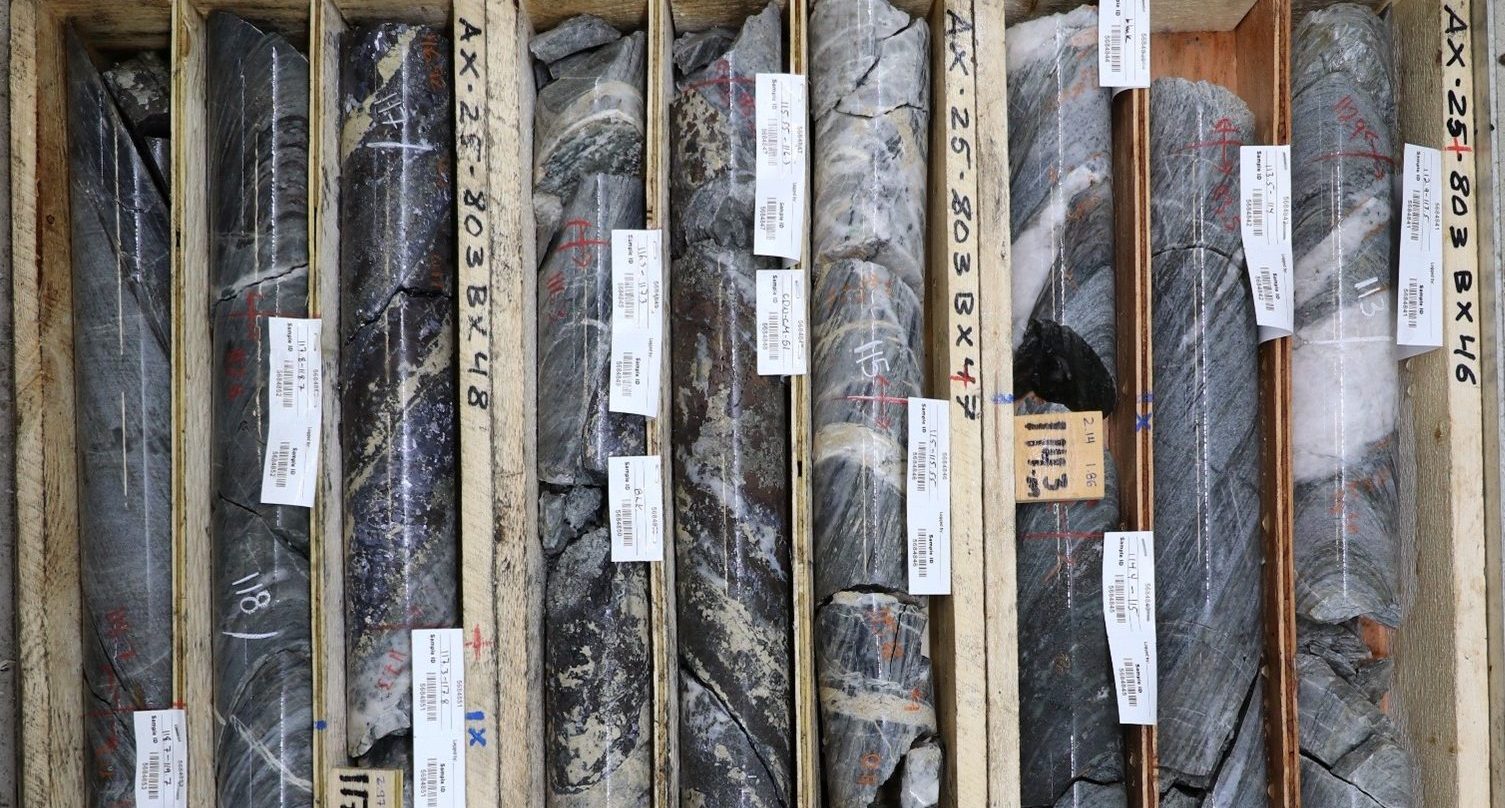 Mineralization in drillhole AX25803 at AurMac project in the Yukon. (Source: Banyan Gold)