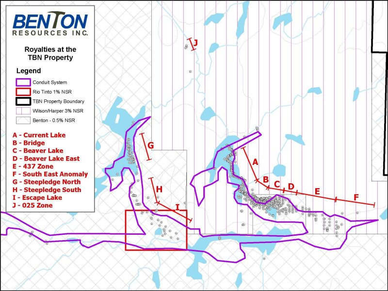 • Benton holds a 9.8 per cent stake in Clean Air Metals and a 0.5 per cent NSR on Thunder Bay North and Escape Lake