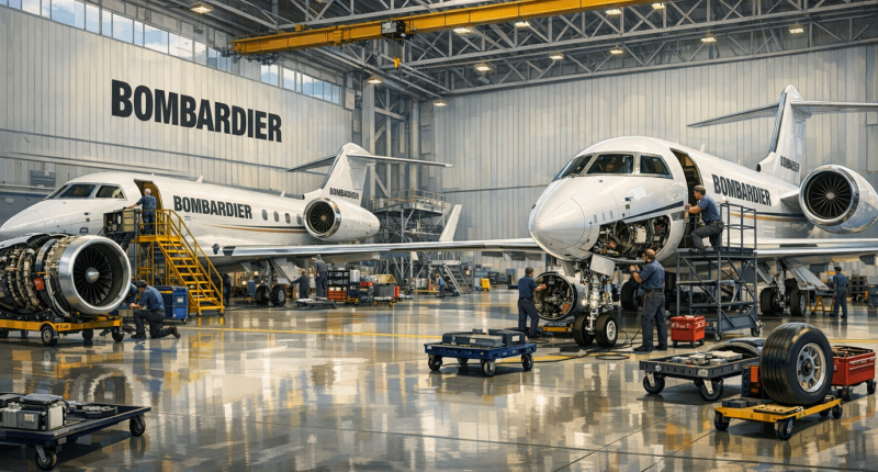 Bombardier repairs hangar. (Source: Microsoft Copilot. Generated by AI)