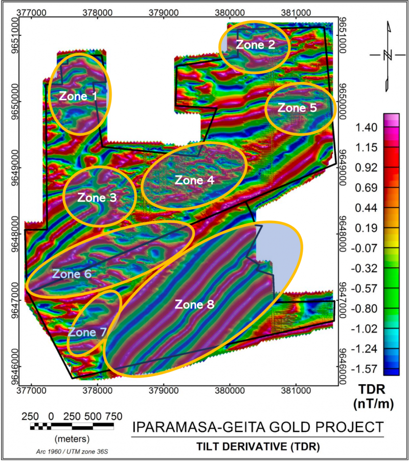 - Southern Zone: A prominent NE-SW trending magnetic lineament aligns with the Buckreef main shear zone, known for hosting high-grade gold mineralization.