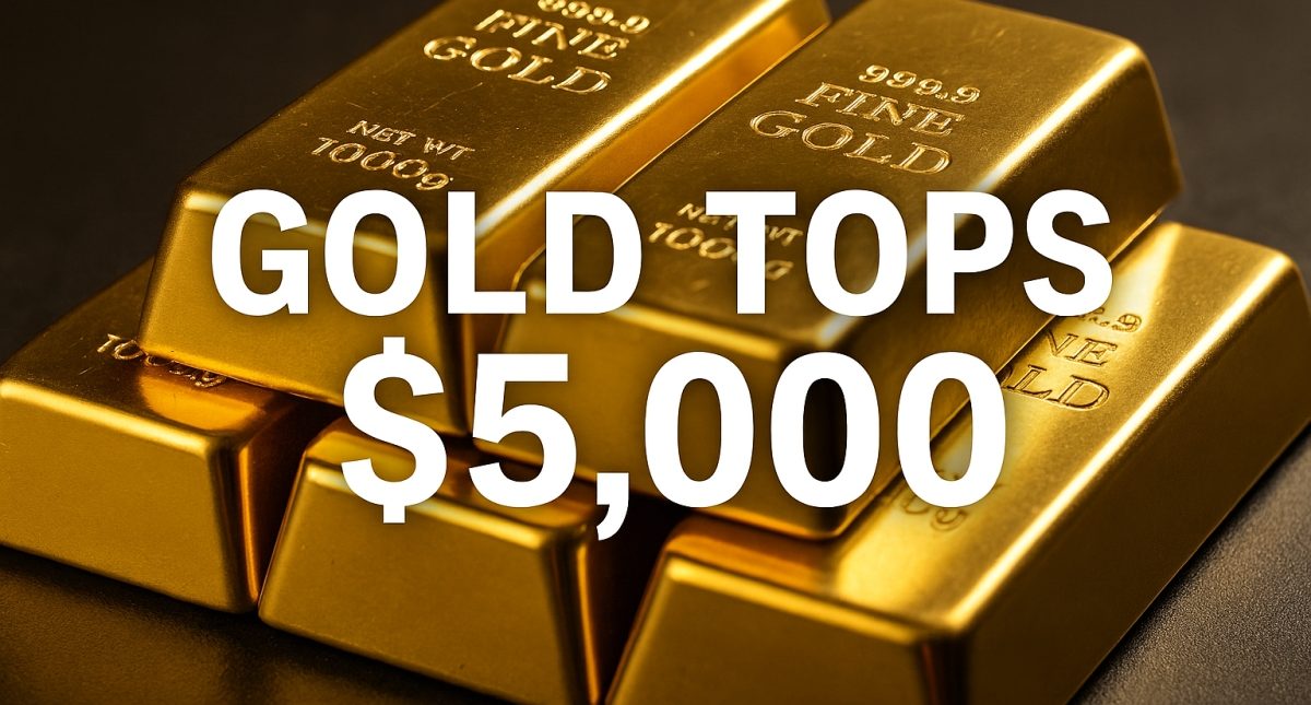 Gold prices smashed through the US$5,000-per‑ounce (C$6,800) barrier for the first time in history, extending a record‑setting rally fueled by geopolitical strains, concerns over rising global debt, and expectations of further monetary easing around the world.