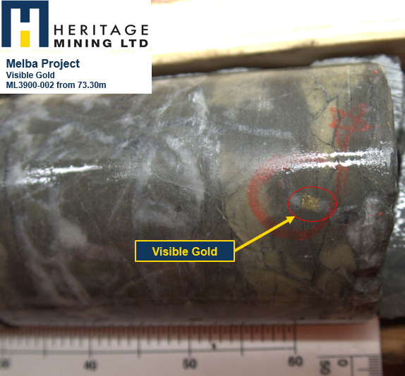 “The identification of visible gold outside of the previous reported interval suggests potential to expand the mineralized zone and exploration potential of the Melba project. We look forward to updating our stakeholders on additional exploration results in short order,” Peter Schloo, president and chief executive officer of Heritage Mining, said in Tuesday’s news release.