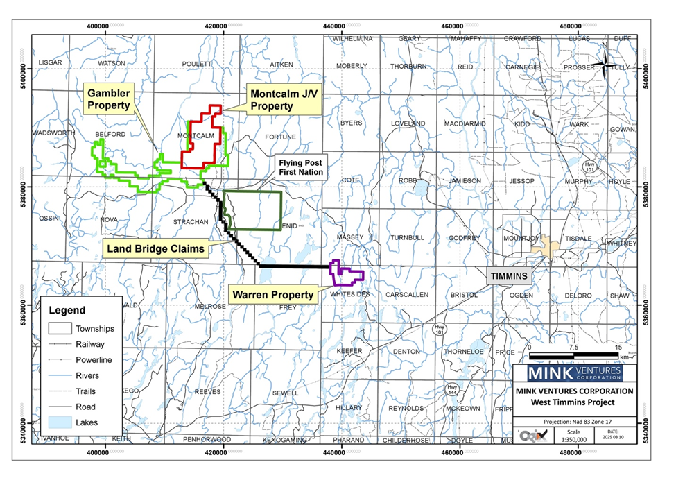 Mink Ventures Corporation (TSXV:MINK) recently completed a mise-à-la-masse survey at the Warren Nickel-Copper-Cobalt Project, located on the western edge of the Timmins Mining Camp (Figure 1).