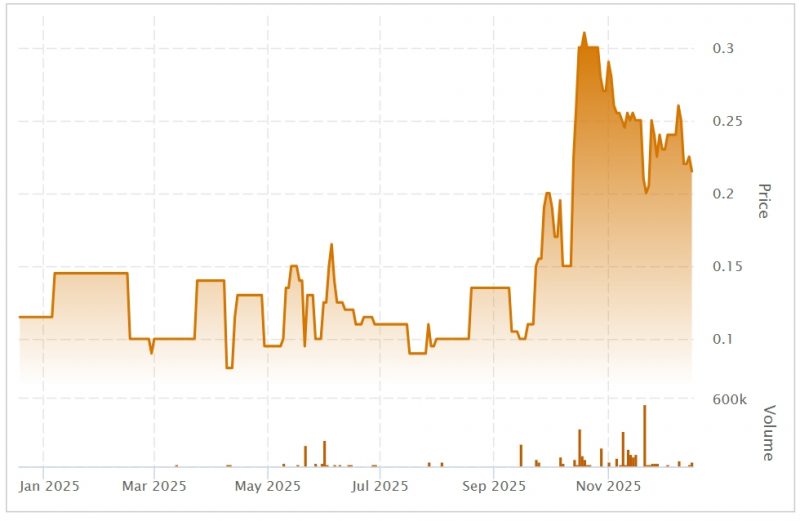 (Sorrento Resources Ltd. stock chart – Jan. 2025 to Jan. 2026.)