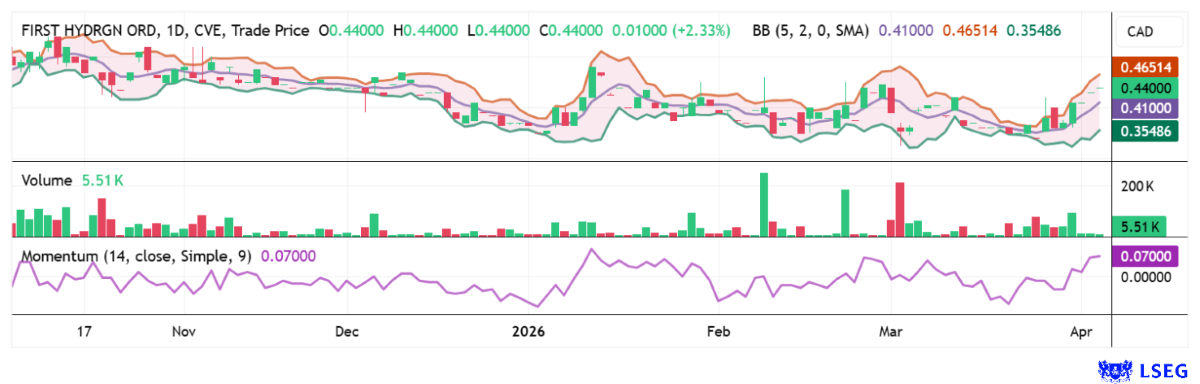 The long consolidation trend since October now appears to be over. With rising revenue and a break above the CAD 0.40 to 0.45 zone, the stock could quickly move higher with fresh momentum. Source: LSEG, April 7, 2026