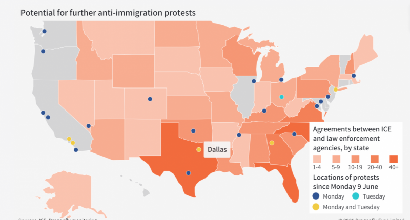 While the scale of unrest seen in LA is not expected to be replicated elsewhere, the intelligence firm cautions that tensions remain high and the potential for escalation cannot be ruled out.