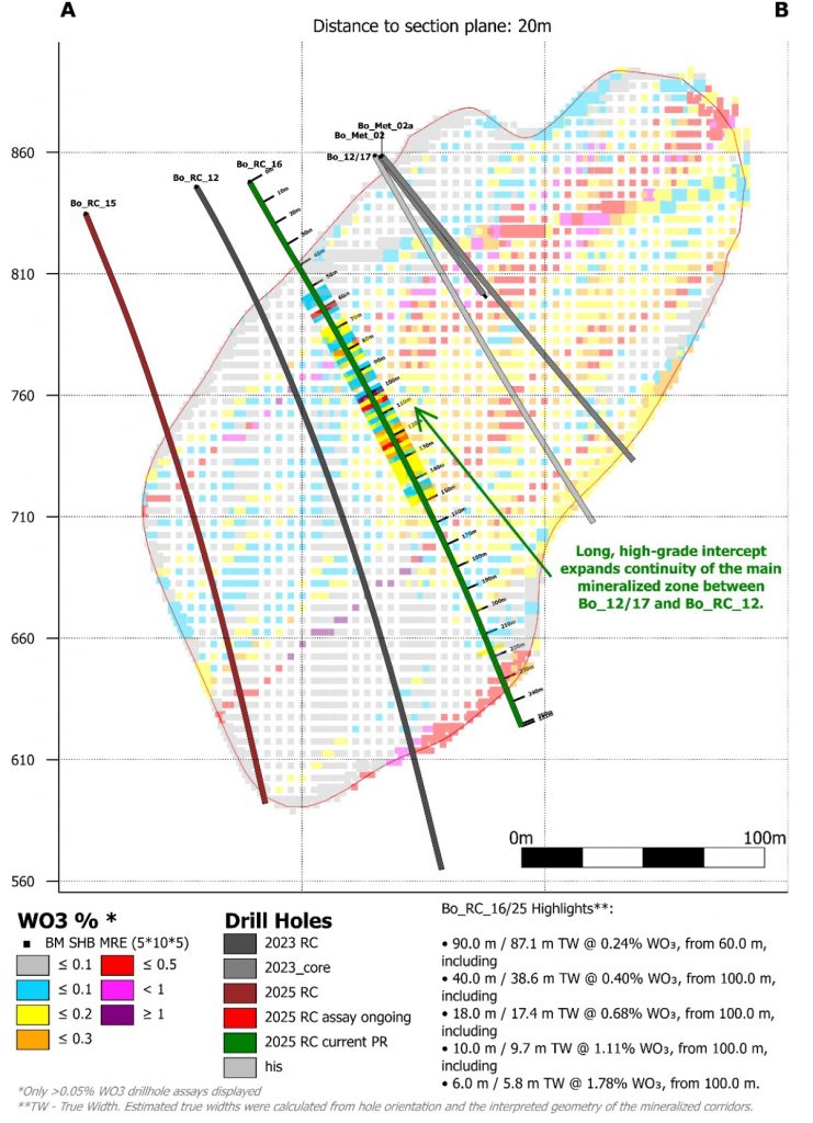 CEO Bonnell noted that Bo_RC_16 has delivered one of the strongest intercepts ever drilled on the project, expanding the high-grade central-south mineralization.