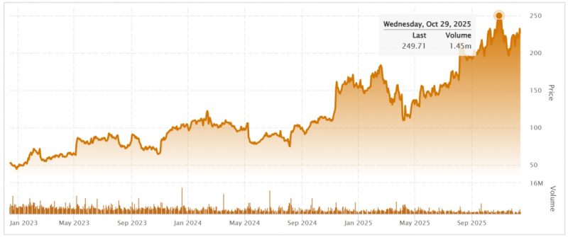 • Q3 revenue hit $2.8 billion (32 per cent YoY growth), beating forecasts and maintaining strong free cash flow, even after a brief pullback from October highs