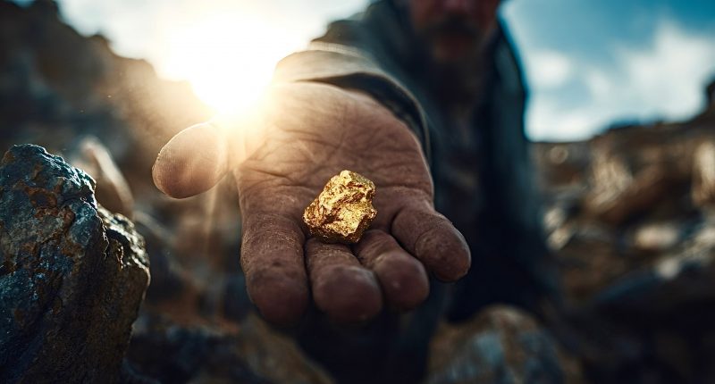 Prospector with gold nugget. (Source: Adobe Stock. Generated by AI)