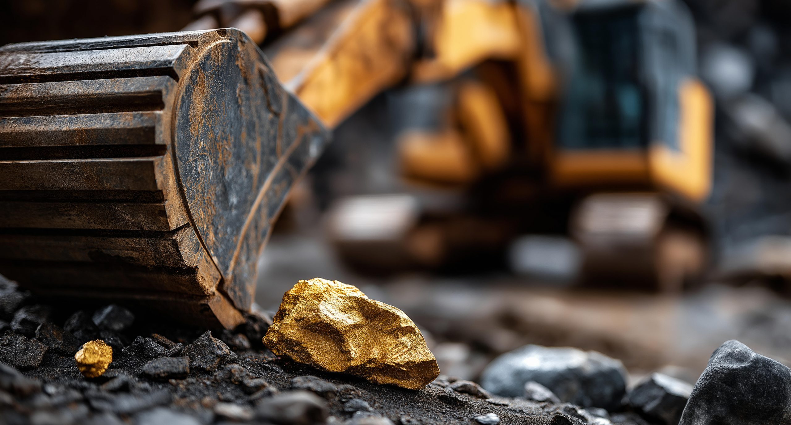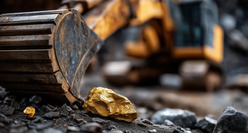 Bulldozer and gold nuggets. (Source: Adobe Stock. Generated by AI)