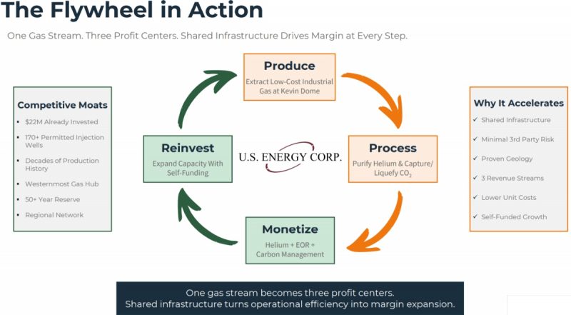 Perhaps the most compelling part of the 2026 plan is how these elements come together economically. U.S. Energy is not simply extracting gas and selling it. Instead, it is creating a closed‑loop revenue model that monetizes both helium and CO₂ through distinct, synergistic pathways.