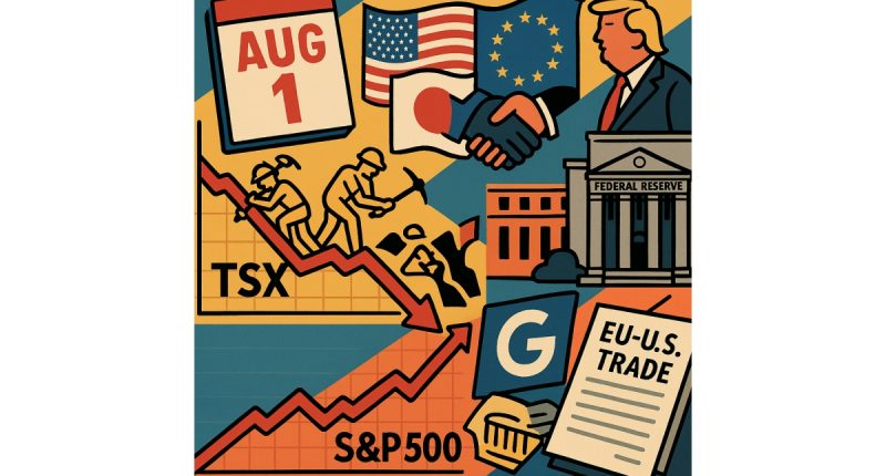 Equities trading in Canada’s largest market remained flat on Thursday, with the TSX weighed down by declines in gold mining stocks. Investors kept a close eye on developments in US trade negotiations ahead of the August 1st deadline, while also digesting corporate earnings reports.