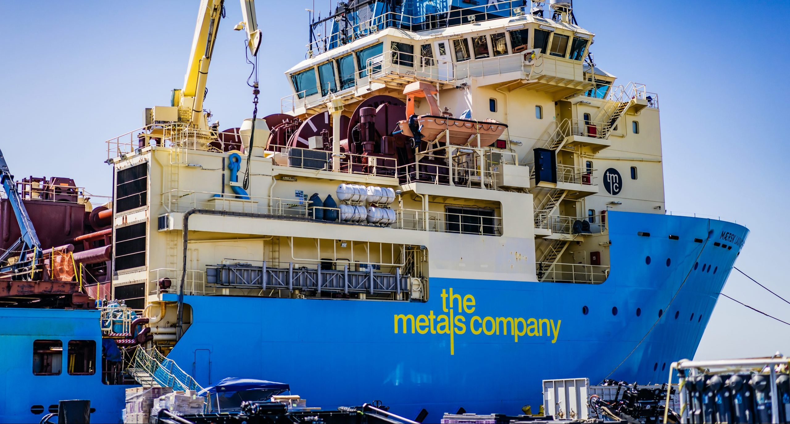 (Top photo of The Metals Company’s exploration vessel, the Maersk Launcher: The Metals Company)