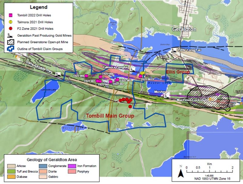 Tombill Mines is a gold exploration company whose flagship project, the Tombill Main Group, is located in the Geraldton mining district of north-central Ontario.
