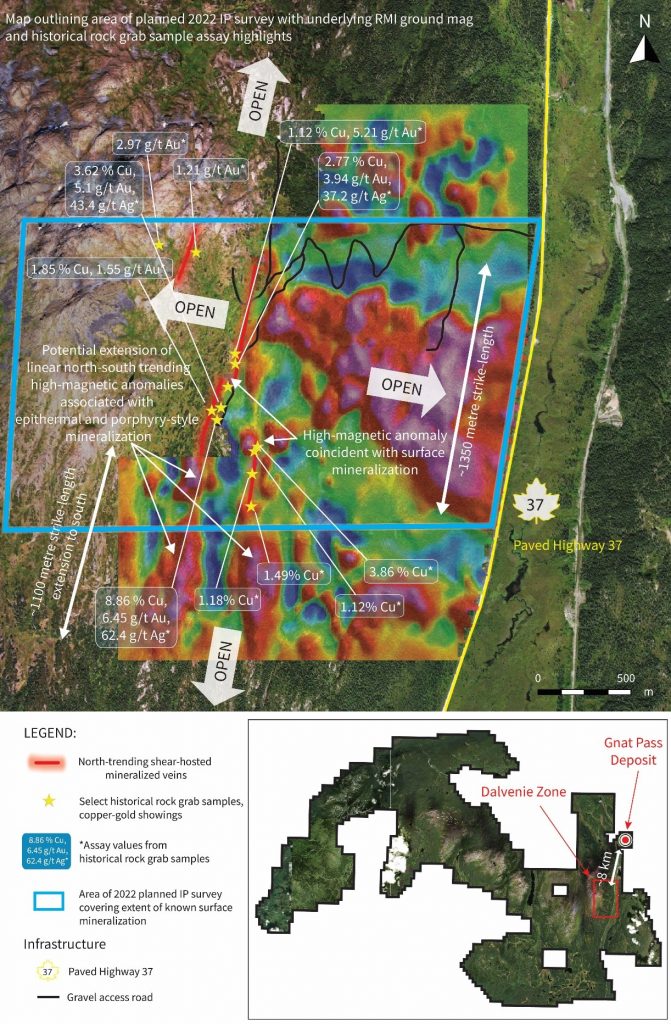“This 2022 field season promises to be very exciting for Torr as we will be the first to systematically explore the highly prospective Dalvenie Zone in addition to testing the expansion potential beyond 1960’s shallow drilling at the Gnat Pass copper-porphyry deposit. We anticipate that this together with targeted exploration of our massive district-scale land package will continue to produce value for our shareholders.”