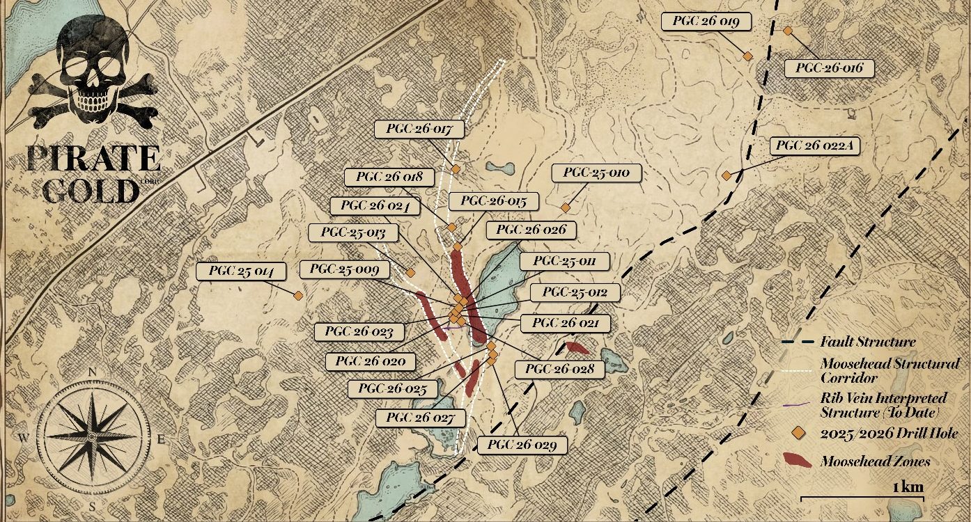 “This is exactly what you want to see in a high-grade system. The Rib vein confirms that gold at Moosehead isn’t limited to a single structure. We’re now starting to unlock multiple orientations, which is how these systems scale,” added Denis Laviolette, executive chair and chief executive officer of Pirate Gold.